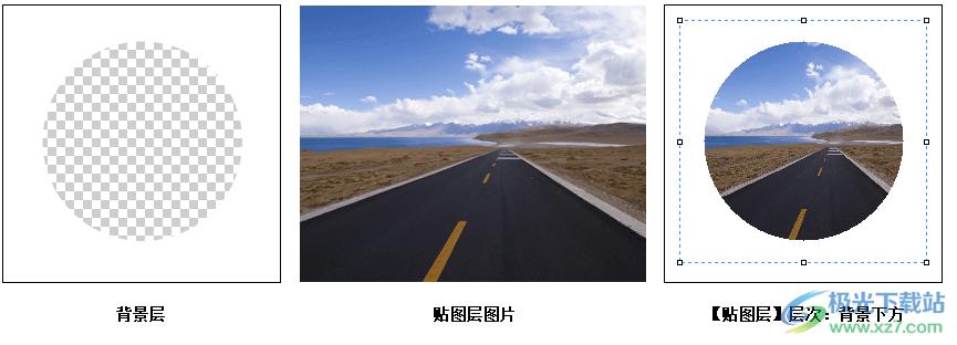 背景下方:贴图层图片显示在背景层的下方,可制作如下效果: