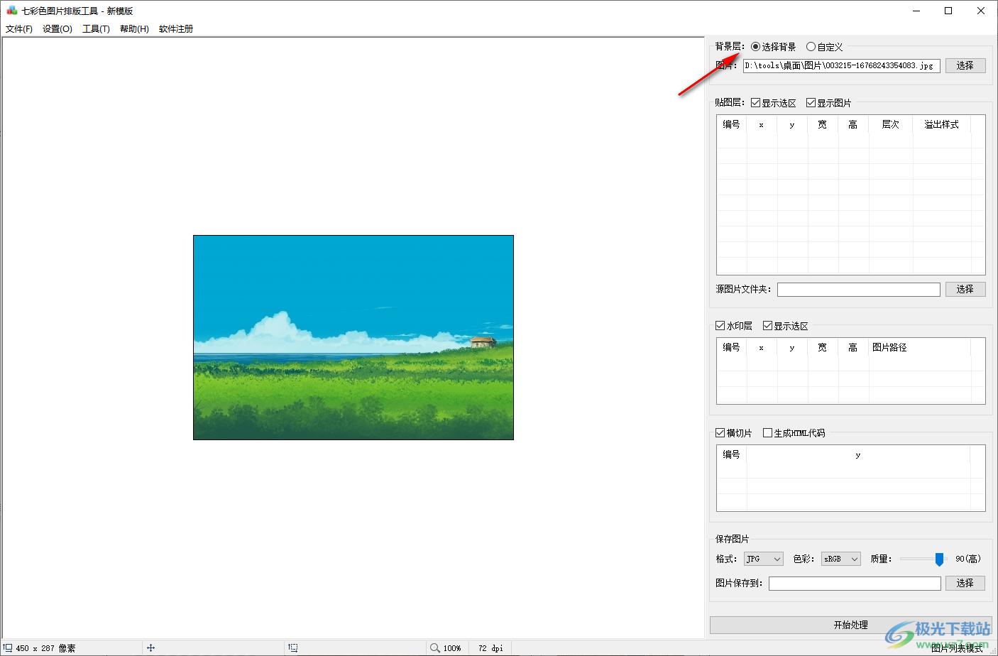 1、七彩色图片排版工具提供简单的图像排版设置功能,可以在软件界面创建贴图层