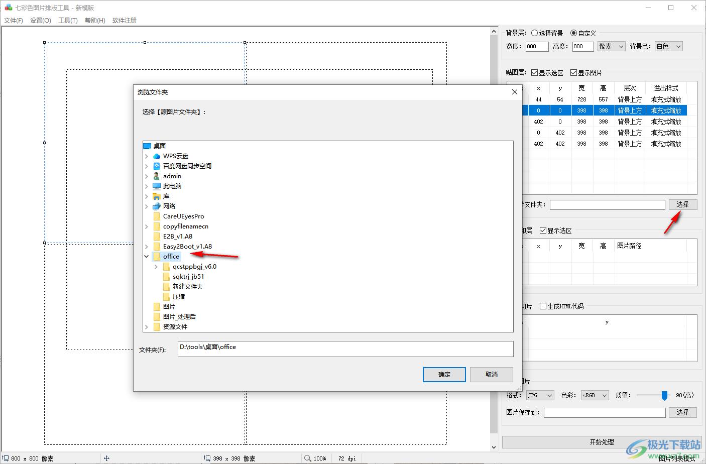 4、添加图像内容,将图像所在的文件夹添加到七彩色图片排版工具