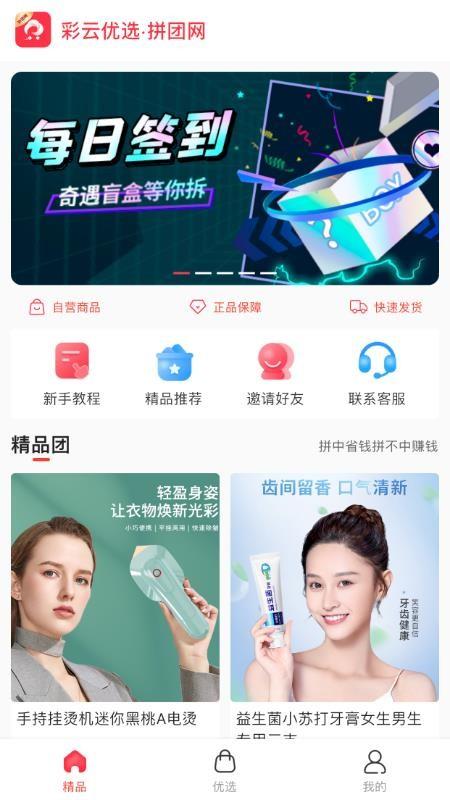 彩云优选app是一款简单实用的补贴型的拼团购物的电商平台,这款软件是受到广大购物爱好者喜欢的购物软件,这里有提供非常丰富的商品,平台精心挑选,专业选品团队进行严格质检,保证商品品质,还有更多的大牌商品等你来选购,百分百正品保证,放心下单购买;另外,在彩云优选软件上还有拼团服务,一人拼中就能拿好货,如果退款还有福利红包补贴可以领取,价格实惠,让你采购可以更加省钱,;还有专业客服在线为你提供服务,为你的购物全程保障,安心购物,如果你感兴趣的话,那就下载吧。