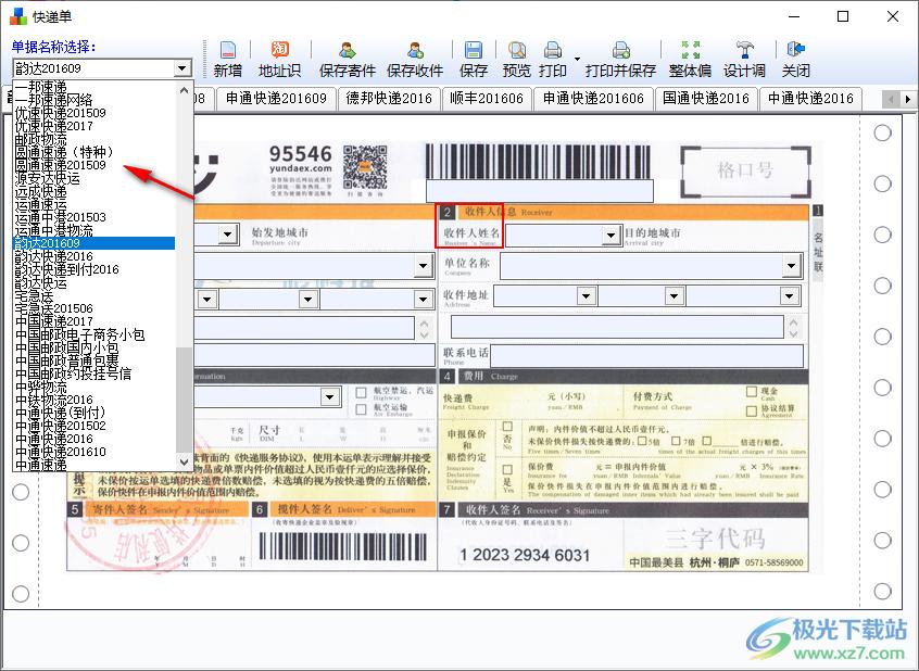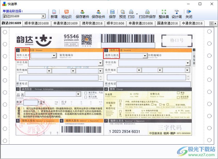 7、快递管理:提供丰富的快递单,直接在软件编辑单据,从而打印使用
