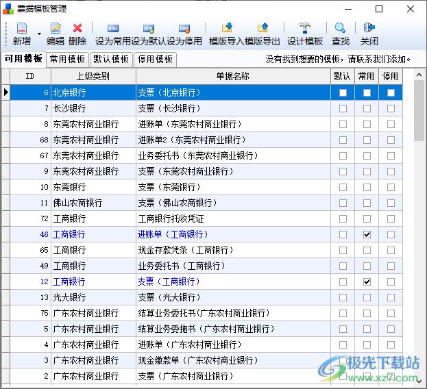 11、模板管理功能,可以在软件界面查看官方提供的全部模板,可以将其设置为常用、设置为默认