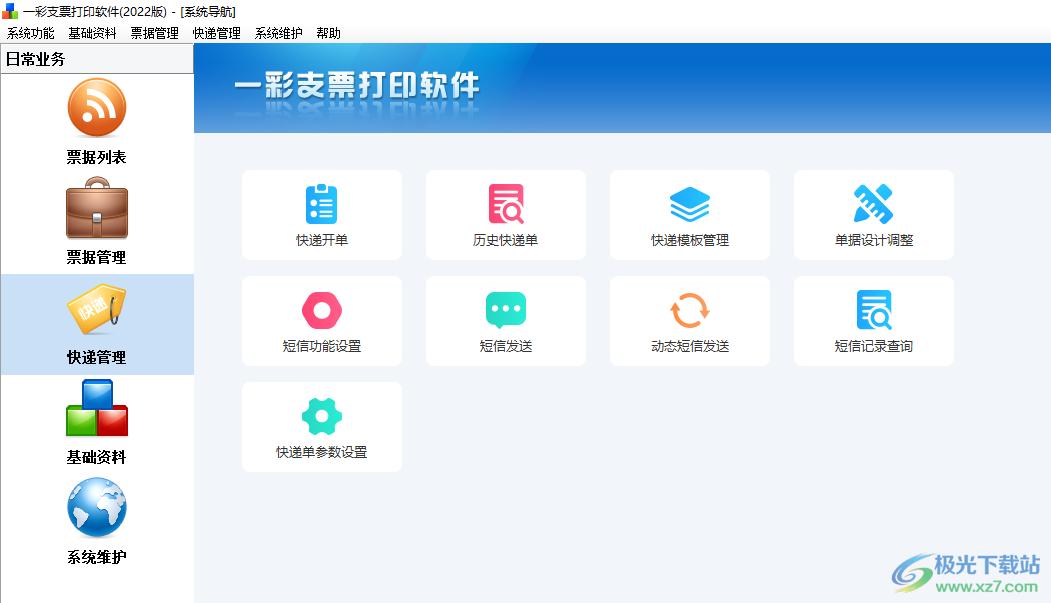 8、也支持快递开单、历史快递单、快递模板管理、单据设计调整、短信功能设置、短信发送、动态短信发送、短信记录查询、快递单参数设置