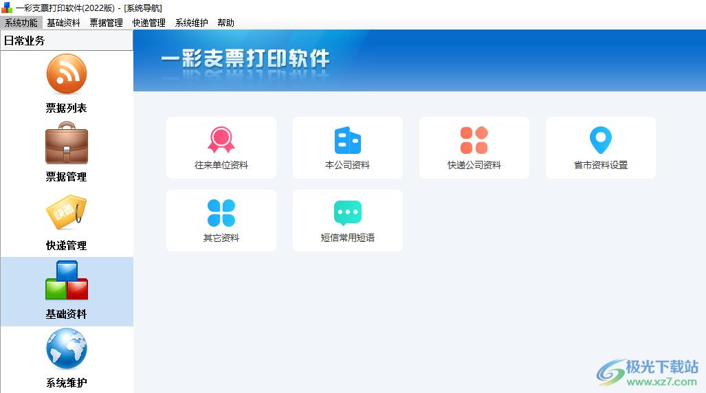 9、基础资料:往来单位资料、本公司资料、快递公司资料、省市资料设置、其它资料、短信常用短语