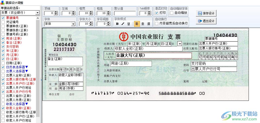6、票据格式调整:可以进入编辑界面添加和移出票据上的各种选项内容,也可以对大小调整