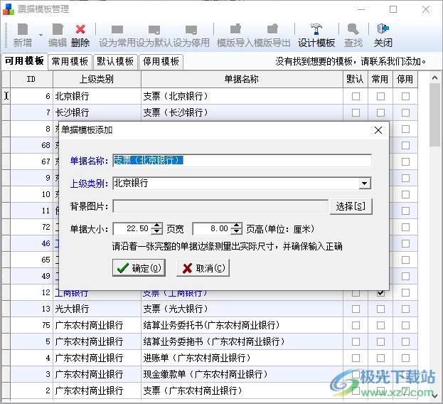 12、模板内容修改,可以输入单位名字,设置上级类别、设置背景图像、设置单据大小