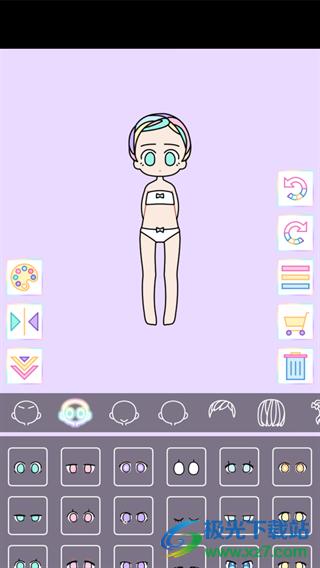 3、这里的一切都是糖果马卡龙的颜色,头发也是可修改颜色的,点击左边的调色板可以看到不同的颜色;