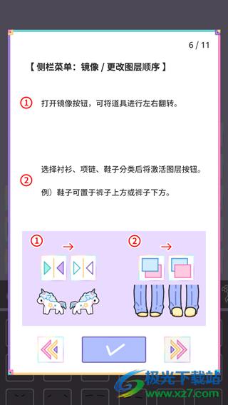 通过换装、混合搭配每件衣服及饰品,直至完成各个角色。