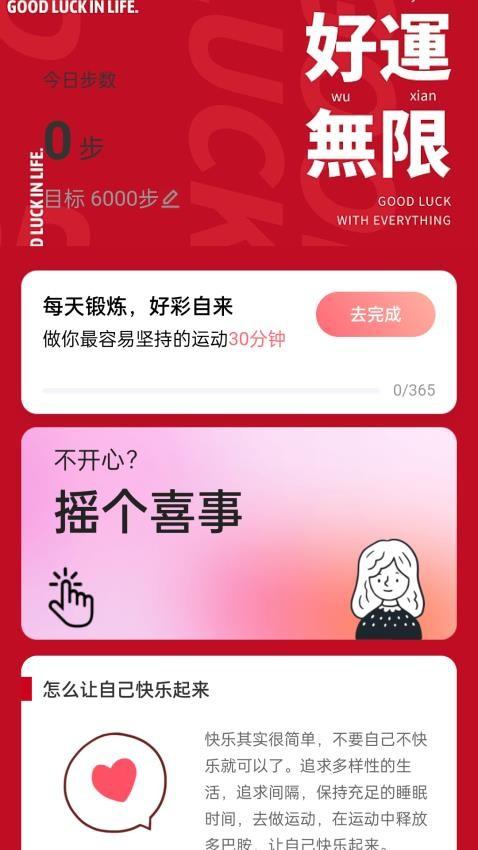 3、摇一摇每日的喜事内容,从而来获取好运