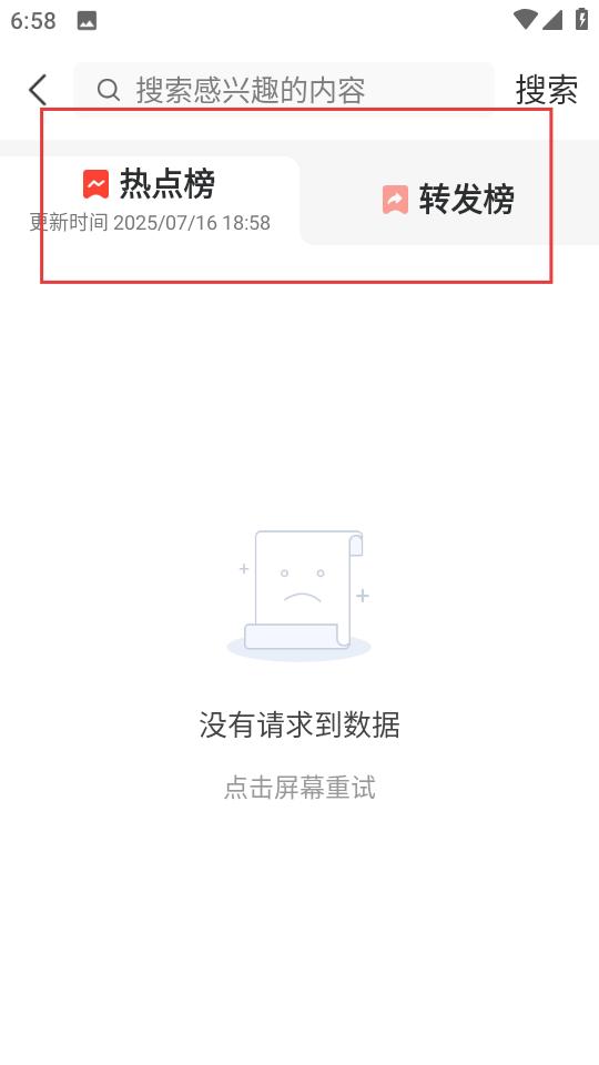 3、搜索关联页面顶部搜索栏可输入内容查找资讯,下方热点榜、转发榜标签,分别汇聚当下热门、高转发量新闻,更新时间明确标注,便于用户快速了解资讯热度趋势。