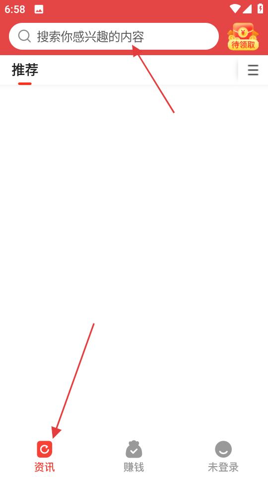 2、APP的资讯界面顶部搜索栏可输入关键词,查找感兴趣的新闻资讯,底部资讯按钮点击进入资讯推荐页,呈现各类实时更新的热点内容,实现便捷获取新闻与平台操作。