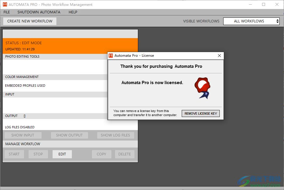 SoftColor Automata Pro提供图像色彩处理功能,可以直接在软件创建新的工作流,按照弹出的工作流程导入项目,配置处理方式,设置色彩方案,设置输出方式,从而让软件按照你配置的方案自动处理色彩,轻松调整图像的整体色彩效果,软件支持自动色彩校正、自动颜色分级、增强颜色、选择性颜色调整、手动颜色工具、对比度、色温、RGB曲线、黑白转换等多种调整功能,您完全可以自定义需要调整的项目到工作流,从而提升图像色彩效果,需要就下载吧!