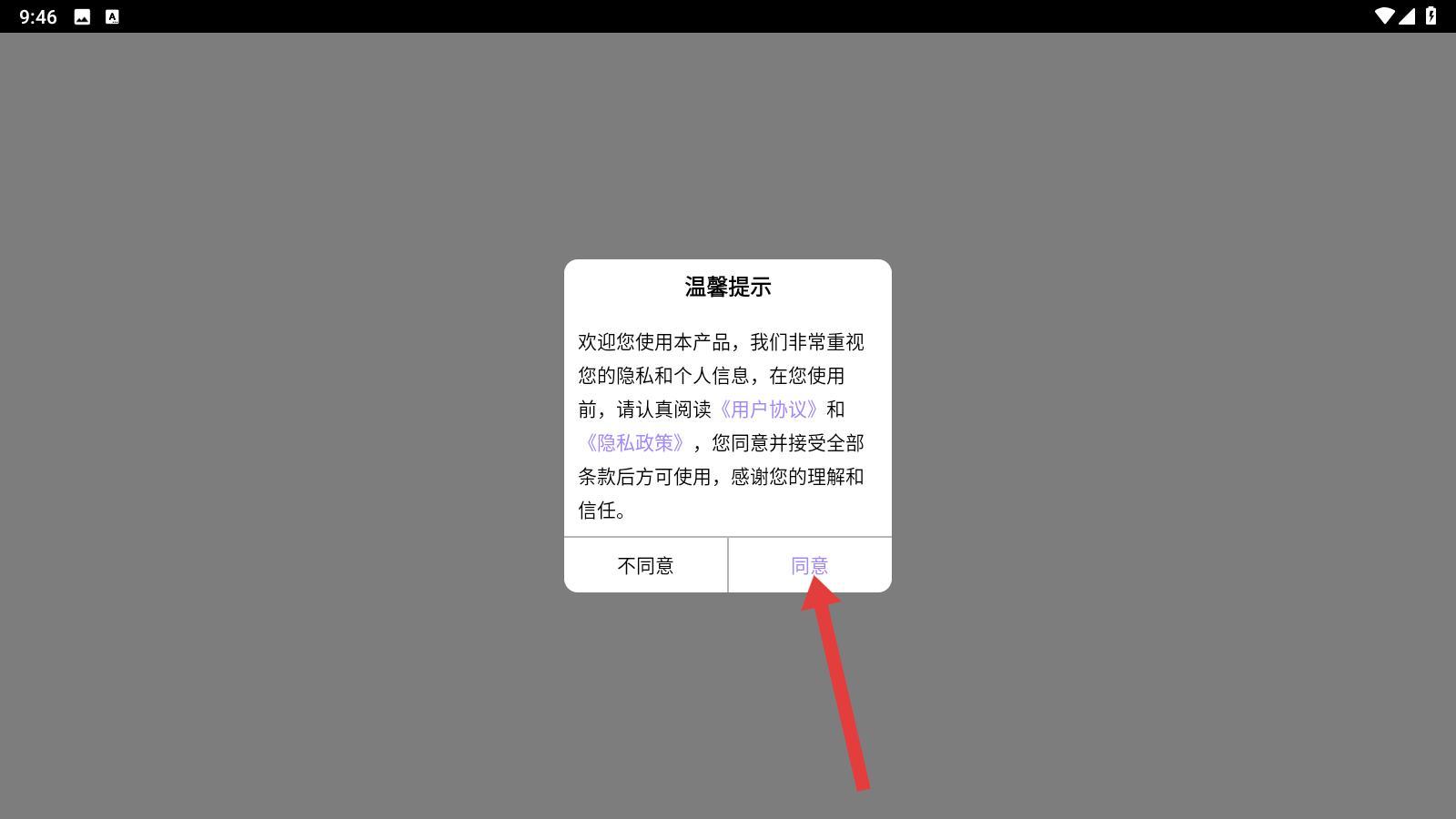 1、首次打开软件,出现隐私提示弹窗,点击同意接受条款,若需拍摄,在权限申请弹窗选允许,随后点顶部相机图标,即可开始拍摄操作。