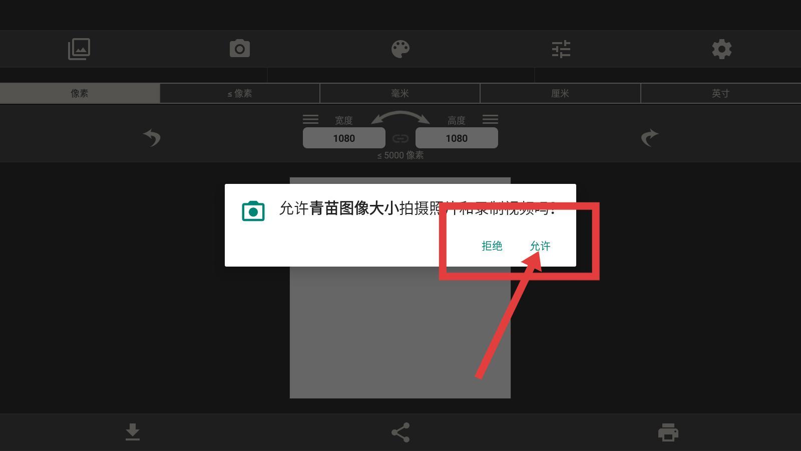 3、打开软件,同意隐私条款,遇到拍摄权限请求,确认允许,之后在顶部工具栏,点击相机形状的图标,即可使用拍摄相关功能。