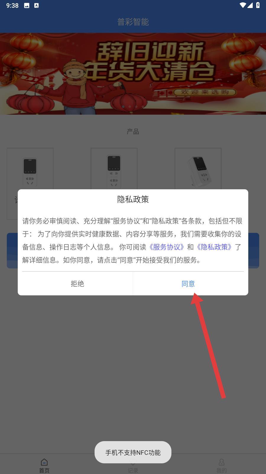1、进入软件之后,会跳出服务协议,需要认真阅读软件给出的建议后点击同意并继续下一步。