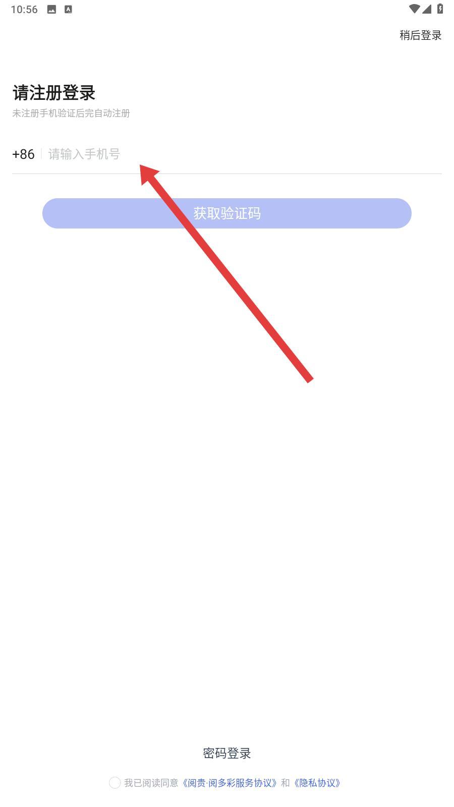 3、在登录界面,选择验证码登录方式,准确输入您的手机号码,点击获取验证码,开始登录操作。