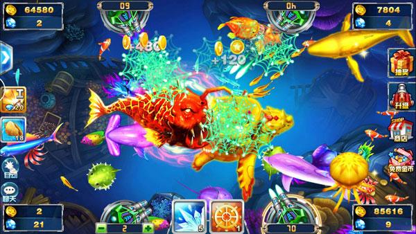 3、还原经典街机捕鱼,BOSS满屏,金币无限送;
