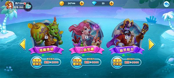 2、现在玩家们看到的是中级场所,并且包括了海魔猎场、人鱼宝藏、幽灵船长等,并且解锁条件是挺有挑战性的,必须具备着相对应的炮数解锁条件才能进入到游戏中。